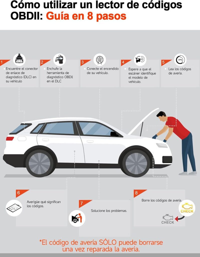 Permite leer códigos de fallo del motor y borrar errores una vez solucionado el problema, apagando la luz de avería del tablero.